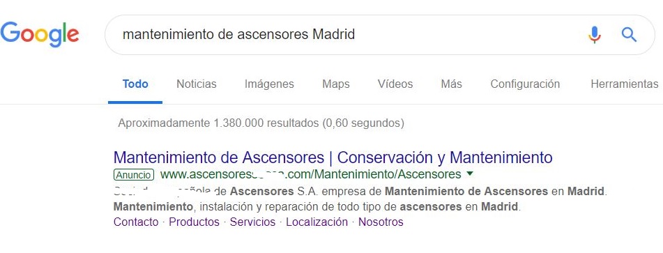 El Cliente es una empresa de conservación y mantenimiento de los aparatos elevadores y ascensores de Madrid que quería aumentar su visibilidad en el buscador Google para generar más clientes. Hicimos nuevas campañas, grupos de anuncios, extensiones y anuncios para dar a conocer la web, sus servicios y generar llamadas y clientes.